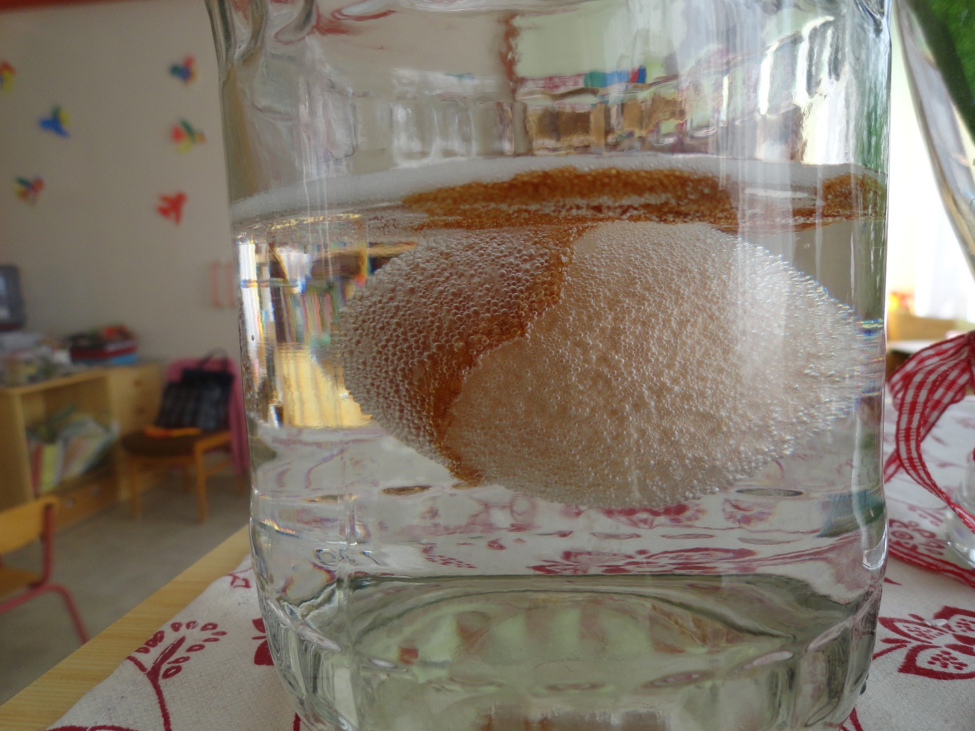 Óvodás gyerekek kísérletet végeztek egy tojással, amit négy napig ecetben áztattak. Az ecet folyamatosan feloldotta a tojás héját és a fehérje annyira megszilárdult, hogy kézzel megfogható lett.
